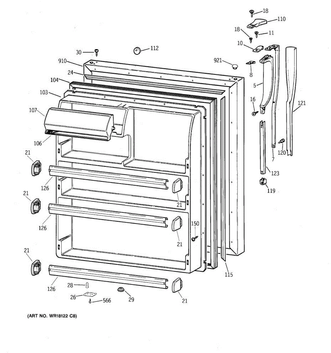 Parts for Ge CTK24GAXGRWW: 02 - Fresh Food Door Parts