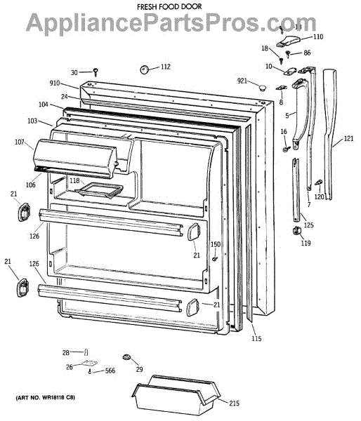 Parts for Ge CTT18GAXBRAA: 02 - Fresh Food Door Parts