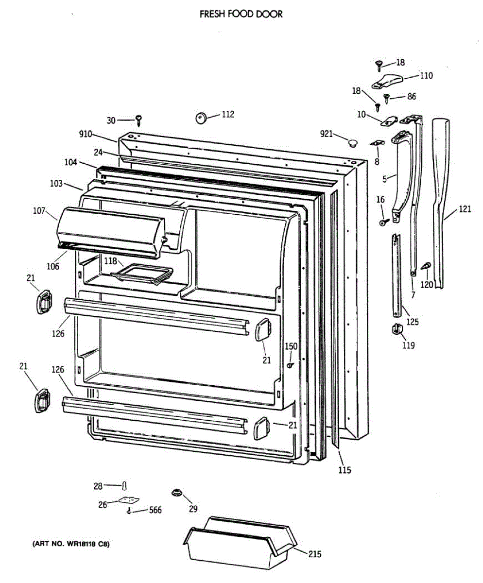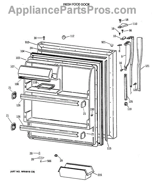 Parts for Ge CTX18BASCRWH: 02 - Fresh Food Door Parts