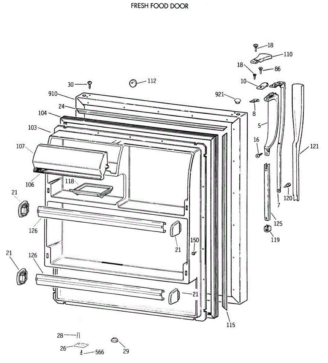 Parts for Ge CTX18CASWRAD: 02 - Fresh Food Door Parts