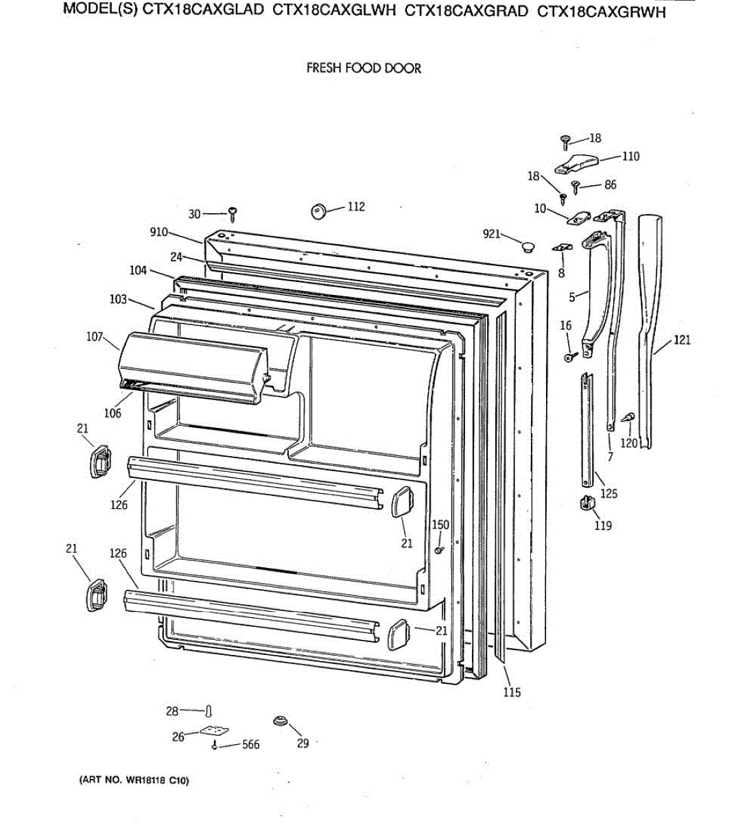 Parts for Ge CTX18CAXGRAD: 02 - Fresh Food Door Parts