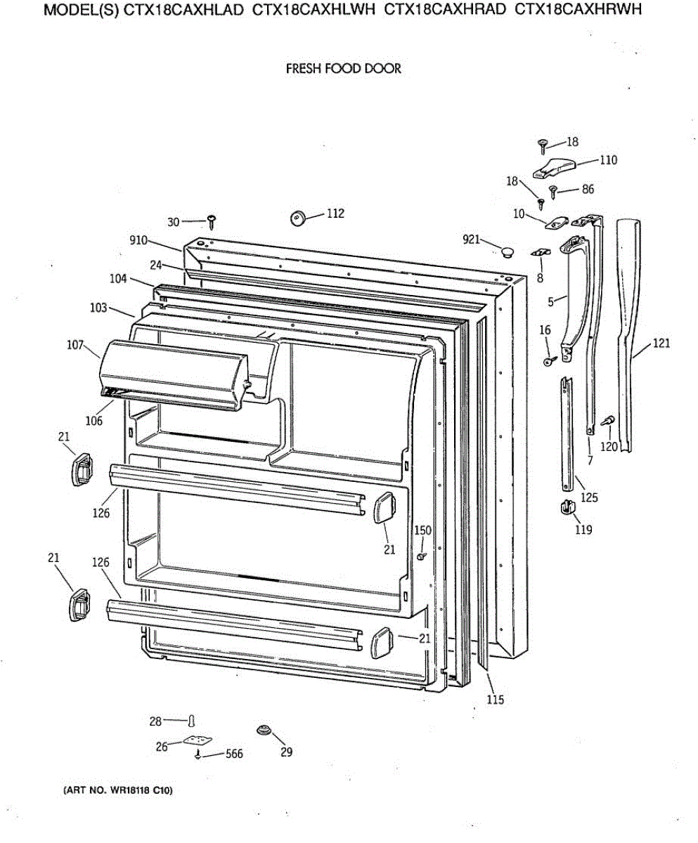 Parts for Ge CTX18CAXHLWH: 02 - Fresh Food Door Parts