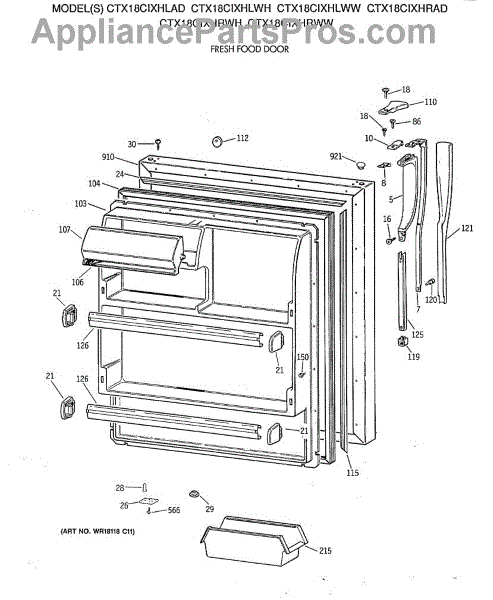 Parts for Ge CTX18CIXHLWW: 02 - Fresh Food Door Parts