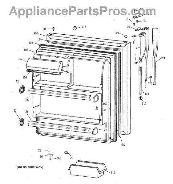 Parts for Ge CTX18CIXPRWW: 02 - Fresh Food Door Parts