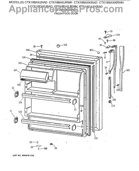 Parts for Ge CTX18EAXJRWH: 02 - Fresh Food Door Parts