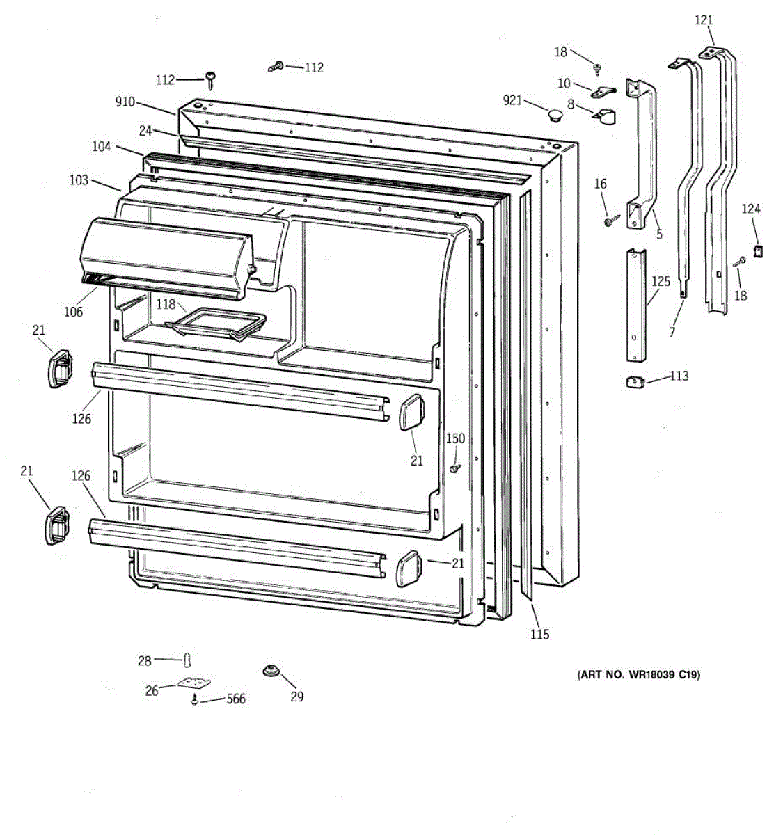 The Refrigerator Door Shelf is an OEM part for GE refrigerators. This shelf provides additional storage space on the refrigerator door, allowing for the convenient organization of smaller items such as condiments, bottles, and jars. It measures 23 inches by 2 inches. Please note, this bar does not come with the end caps, which must be ordered separately by model number.