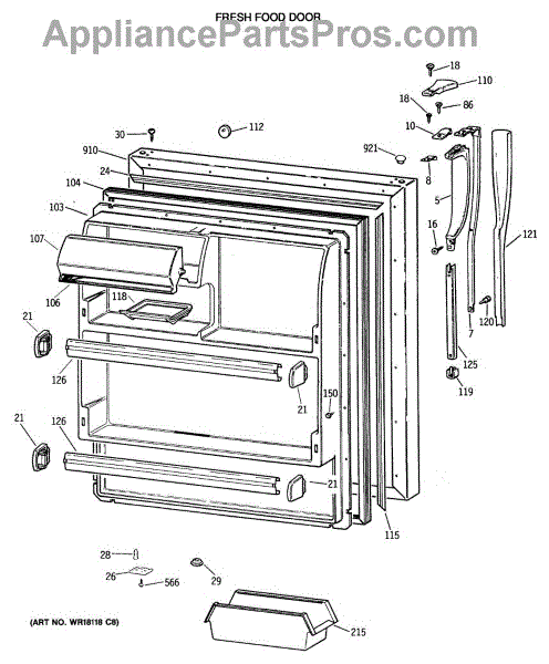 Parts for Ge CTX18GASJRWW: 02 - Fresh Food Door Parts