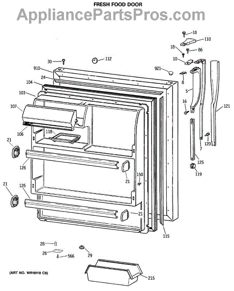 Seals the fresh food door to prevent cold air loss and maintain temperature. Replace if cracked, torn, or not sealing properly. Verify fit by model.