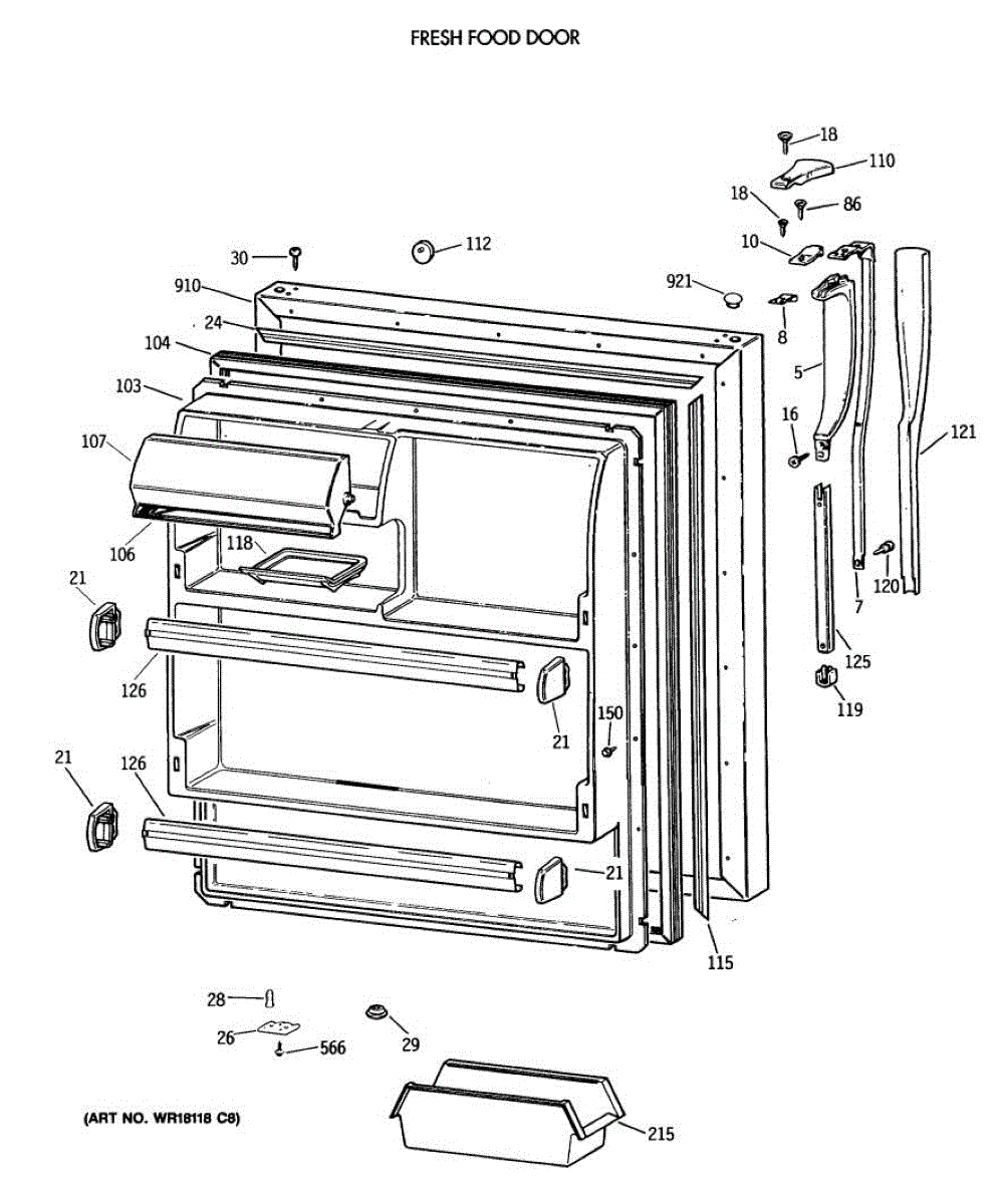 Parts for Ge CTX18GASVRWW: 02 - Fresh Food Door Parts