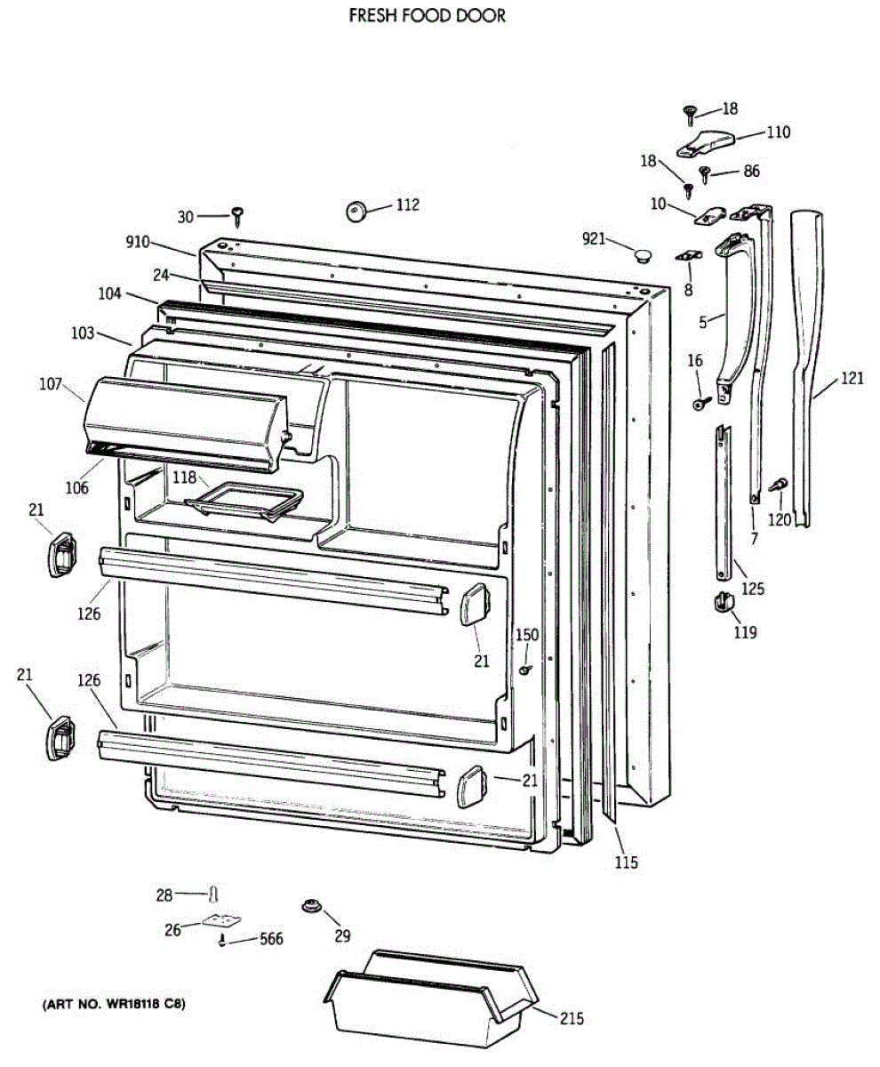 Parts for Ge CTX18GAXCRWW: 02 - Fresh Food Door Parts
