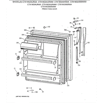 Parts for Ge CTX18GAXJRWW: 02 - Fresh Food Door Parts