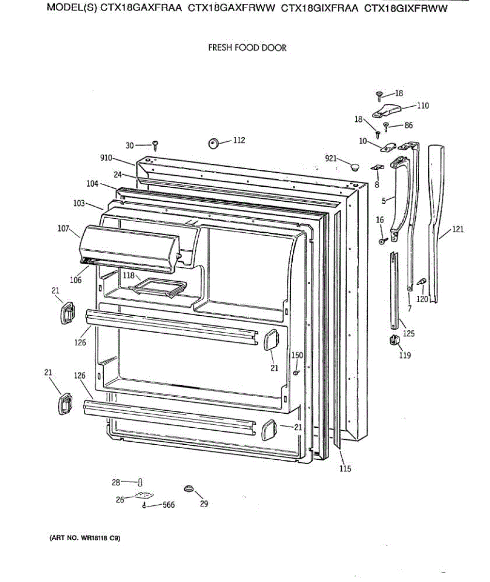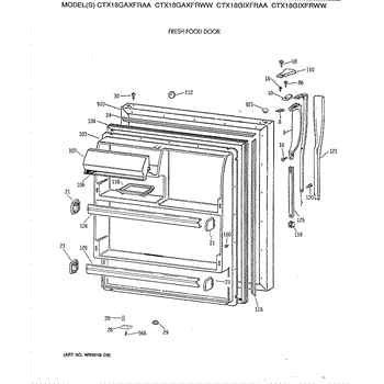Parts for Ge CTX18GIXFRWW: 02 - Fresh Food Door Parts