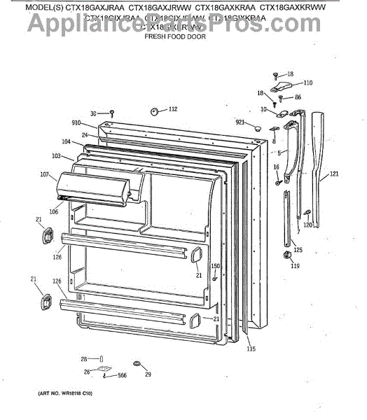 Parts for Ge CTX18GIXJRAA: 02 - Fresh Food Door Parts