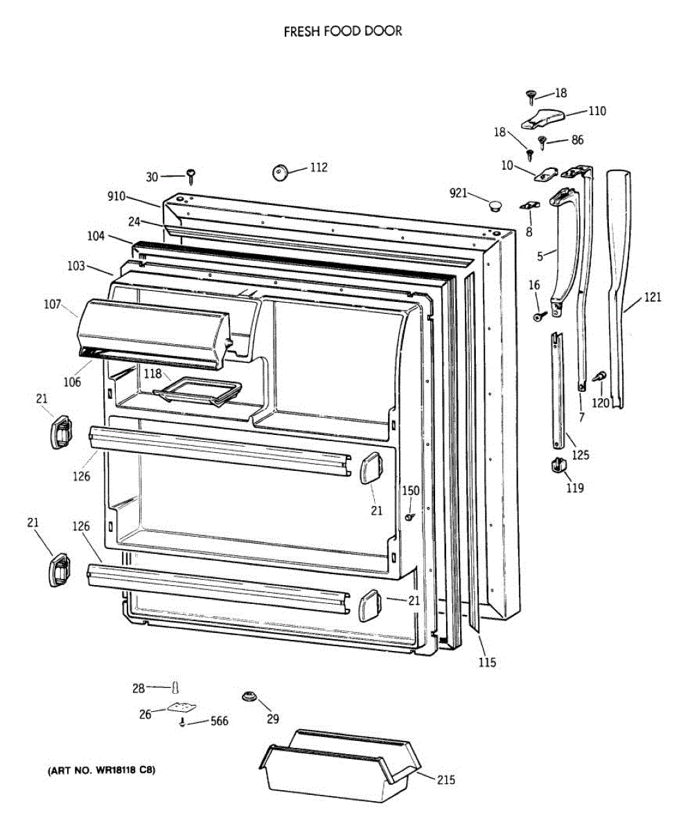 Parts for Ge CTX18KAXCRAD: 02 - Fresh Food Door Parts