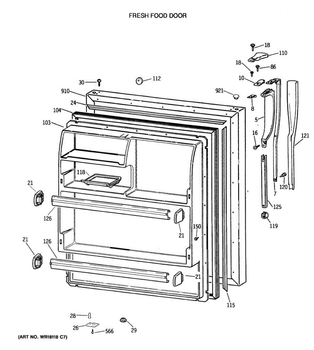 Parts for Ge CTX18LASJLWH: 02 - Fresh Food Door Parts
