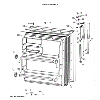 Parts for Ge CTX18LASJRWH: 02 - Fresh Food Door Parts