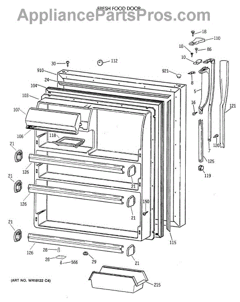 Parts for Ge CTX21BAXDRWH: 02 - Fresh Food Door Parts