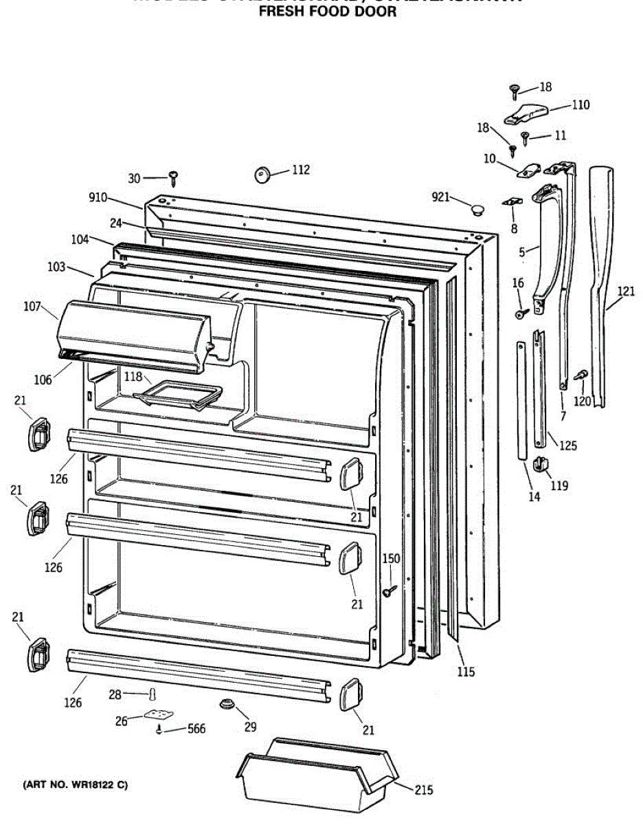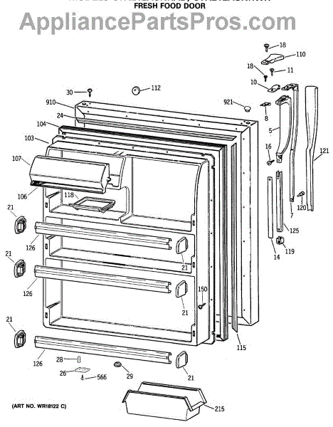 Parts for Ge CTX21EASNRWH: 02 - Fresh Food Door Parts