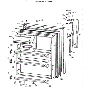 The Fresh Food Door Gasket is an OEM part for GE refrigerators. It seals the perimeter of the refrigerator's fresh food door, maintaining the internal temperature by preventing warm air from entering and cold air from escaping. The gasket measures approximately 39-3/4 inches by 29-3/4 inches.