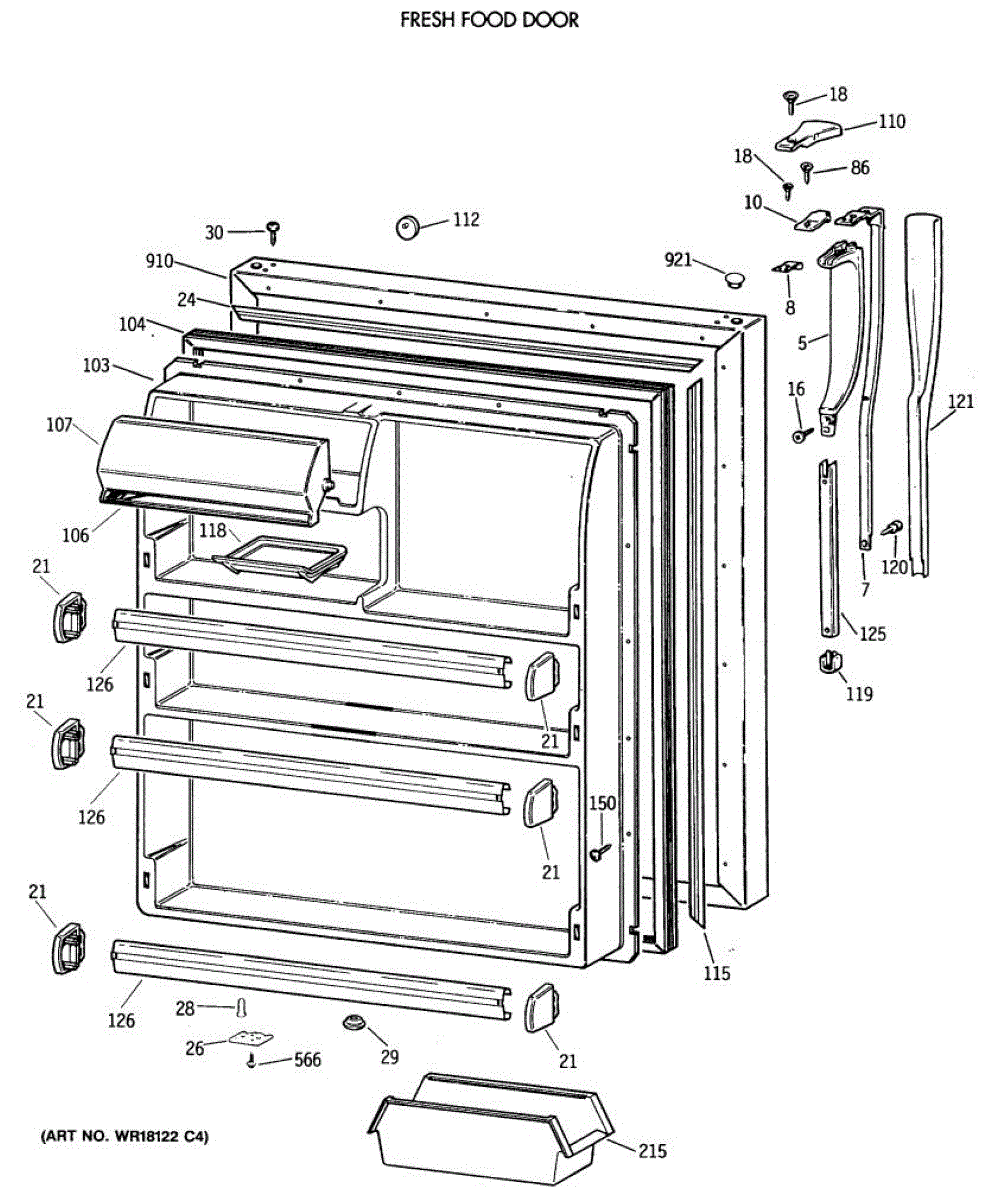 The Fresh Food Door Gasket is an OEM part for GE refrigerators. It seals the perimeter of the refrigerator's fresh food door, maintaining the internal temperature by preventing warm air from entering and cold air from escaping. The gasket measures approximately 39-3/4 inches by 29-3/4 inches.