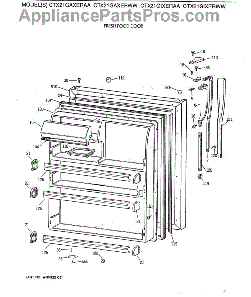 Parts for Ge CTX21GIXERWW: 02 - Fresh Food Door Parts
