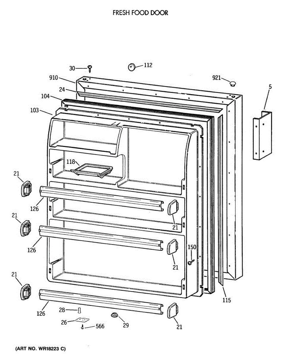 The Fresh Food Door Gasket is an OEM part for GE refrigerators. It seals the perimeter of the refrigerator's fresh food door, maintaining the internal temperature by preventing warm air from entering and cold air from escaping. The gasket measures approximately 39-3/4 inches by 29-3/4 inches.