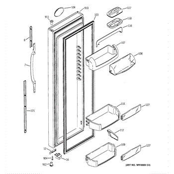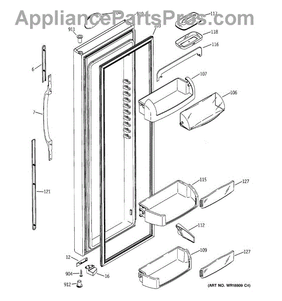 The Door Bin is an OEM part for GE refrigerators. It is a convenient storage compartment located on the interior of the refrigerator door, designed to hold and organize smaller items such as condiments, jars, or beverages.