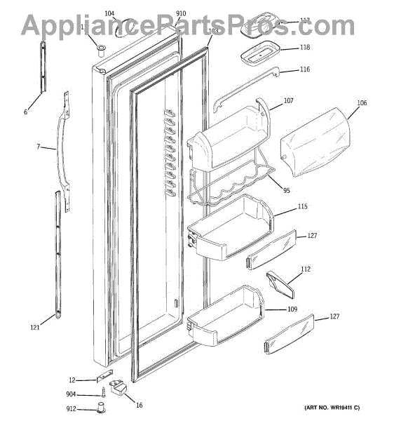 The Door Bin is an OEM part for GE refrigerators. It is a convenient storage compartment located on the interior of the refrigerator door, designed to hold and organize smaller items such as condiments, jars, or beverages.