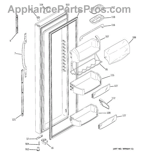 The Door Bin is an OEM part for GE refrigerators. It is a convenient storage compartment located on the interior of the refrigerator door, designed to hold and organize smaller items such as condiments, jars, or beverages.