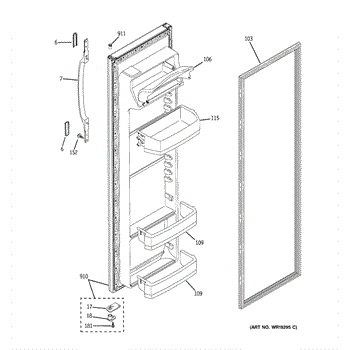 The Fresh Food Door Shelf is an OEM part for GE refrigerators. This part provides additional storage space on the refrigerator door for organizing and holding items like condiments, bottles, and jars, making them easily accessible.