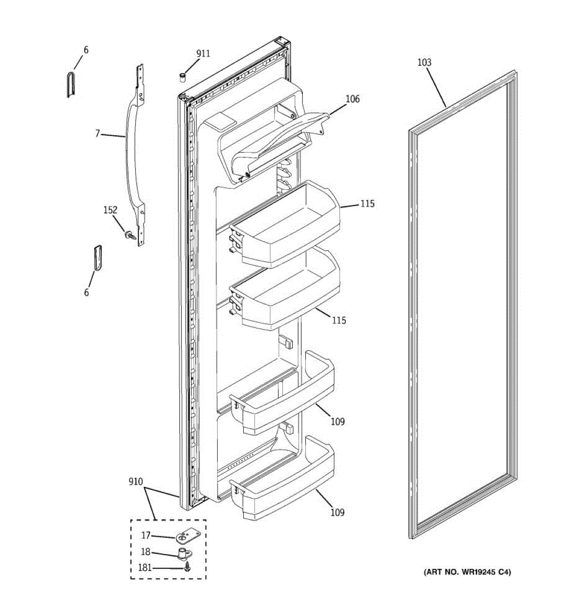 The Door Handle is an OEM part for GE refrigerators. This part provides a secure and comfortable grip for opening and closing the refrigerator door.