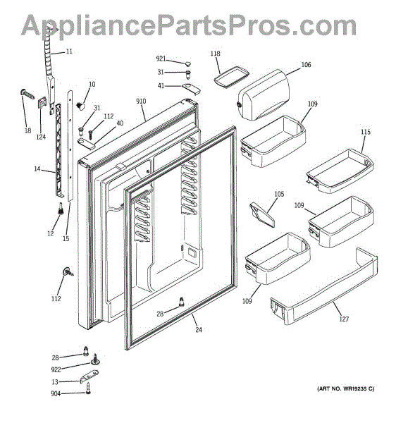 A replacement white door gasket that seals the refrigerator/freezer door to help maintain proper temperature and reduce energy loss. Fits compatible GE refrigerators that use part number WR24X10088. What it does: