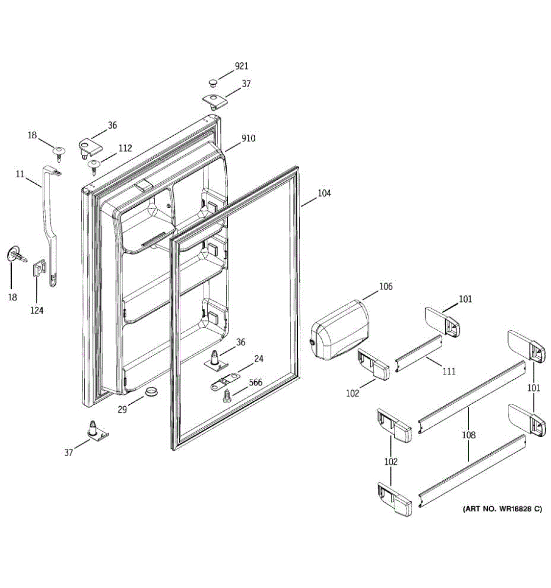The Gasket Door FF is an OEM part for GE refrigerators. This gasket creates a seal around the door frame of the fresh food compartment, helping to maintain the internal temperature by preventing warm air from entering and cold air from escaping. The white gasket measures approximately 28 x 44 inches.