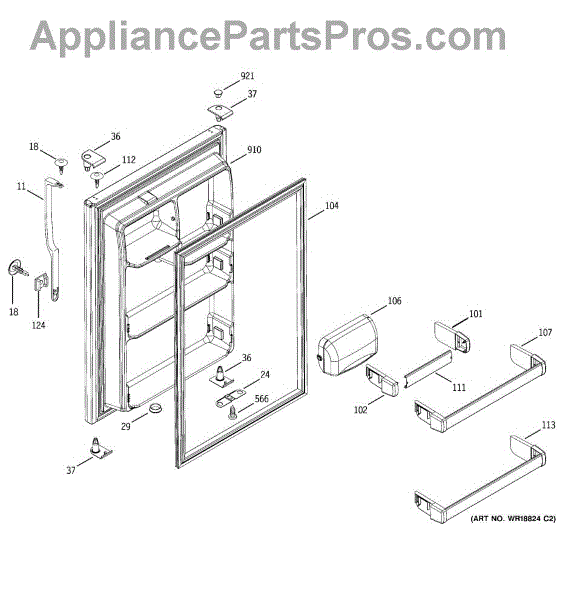 The Fresh Food Door Shelf Bar is an OEM part for GE refrigerators. This shelf bar provides a secure space for storing items like bottles, jars, and condiments. It helps maximize the storage capacity and keeps items organized and easily accessible.