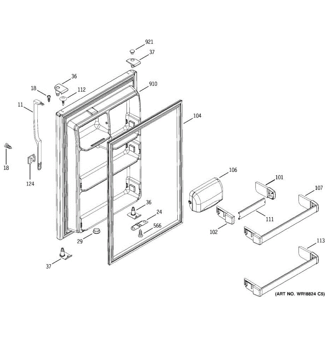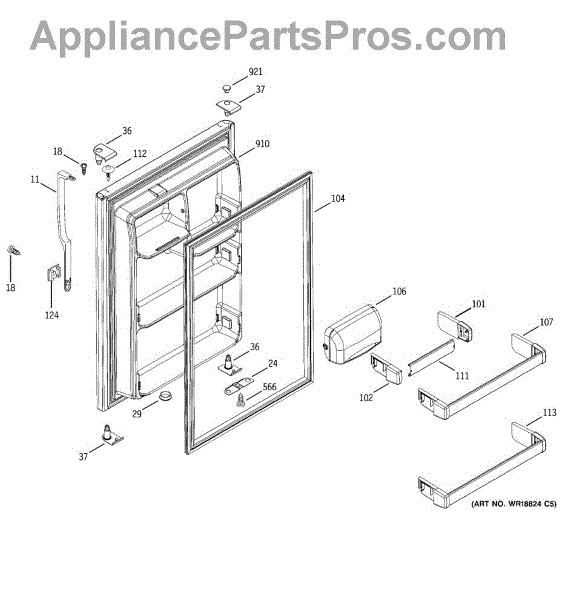 Parts for Ge HTS18GBMCRWW: 02 - Fresh Food Door Parts