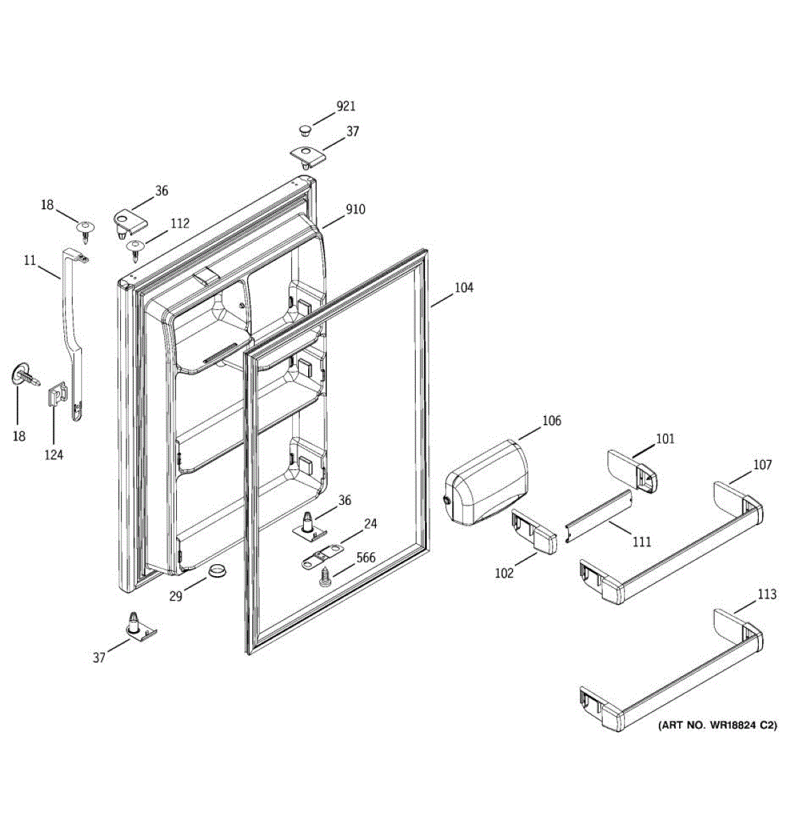 Parts for Ge HTS18GCMARCC: 02 - Fresh Food Door Parts