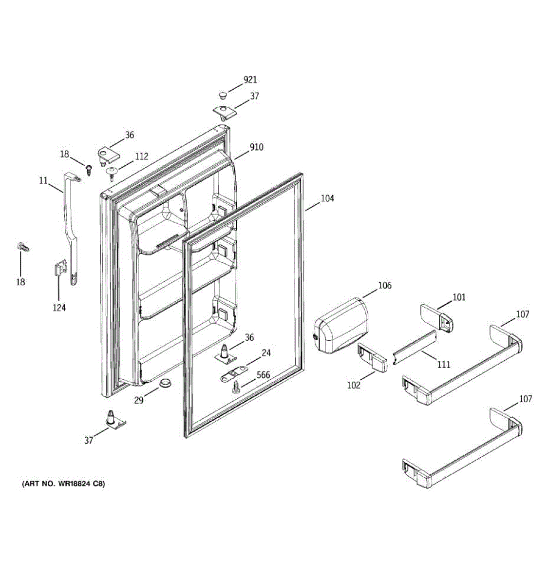The Fresh Food Door Shelf Bar is an OEM part for GE refrigerators. This shelf bar provides a secure space for storing items like bottles, jars, and condiments. It helps maximize the storage capacity and keeps items organized and easily accessible.