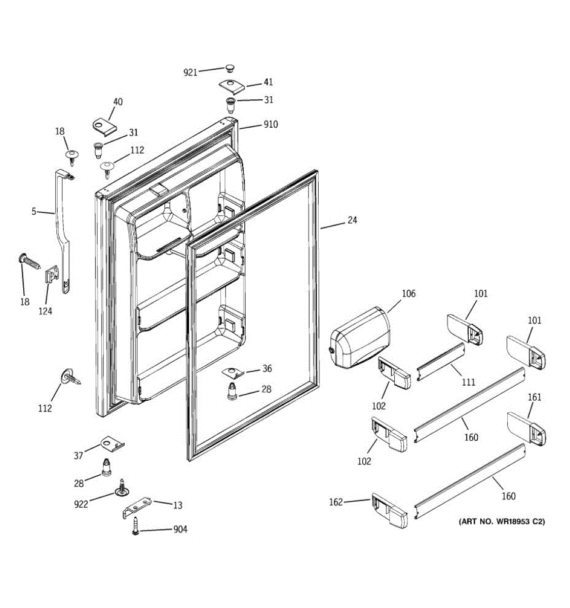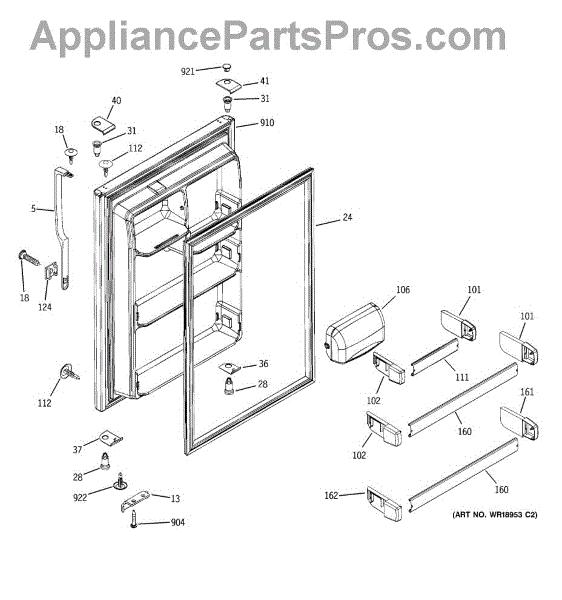 A replacement bottom door cap that restores the finished edge and support at the lower corner of the appliance door. Keeps the door looking complete and helps protect the hinge area from damage. What it does
