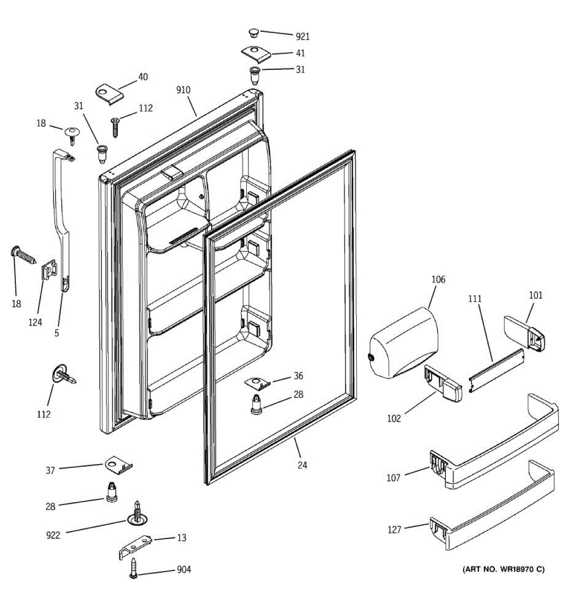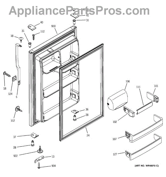 A replacement bottom door cap that restores the finished edge and support at the lower corner of the appliance door. Keeps the door looking complete and helps protect the hinge area from damage. What it does