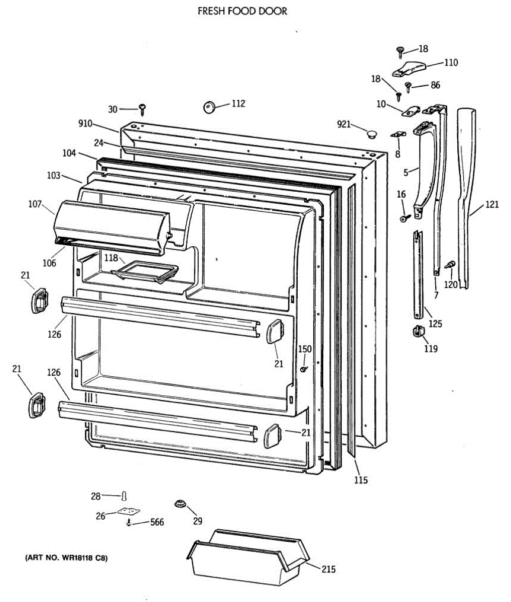 Parts for Ge MTX18EAXBRWH: 02 - Fresh Food Door Parts