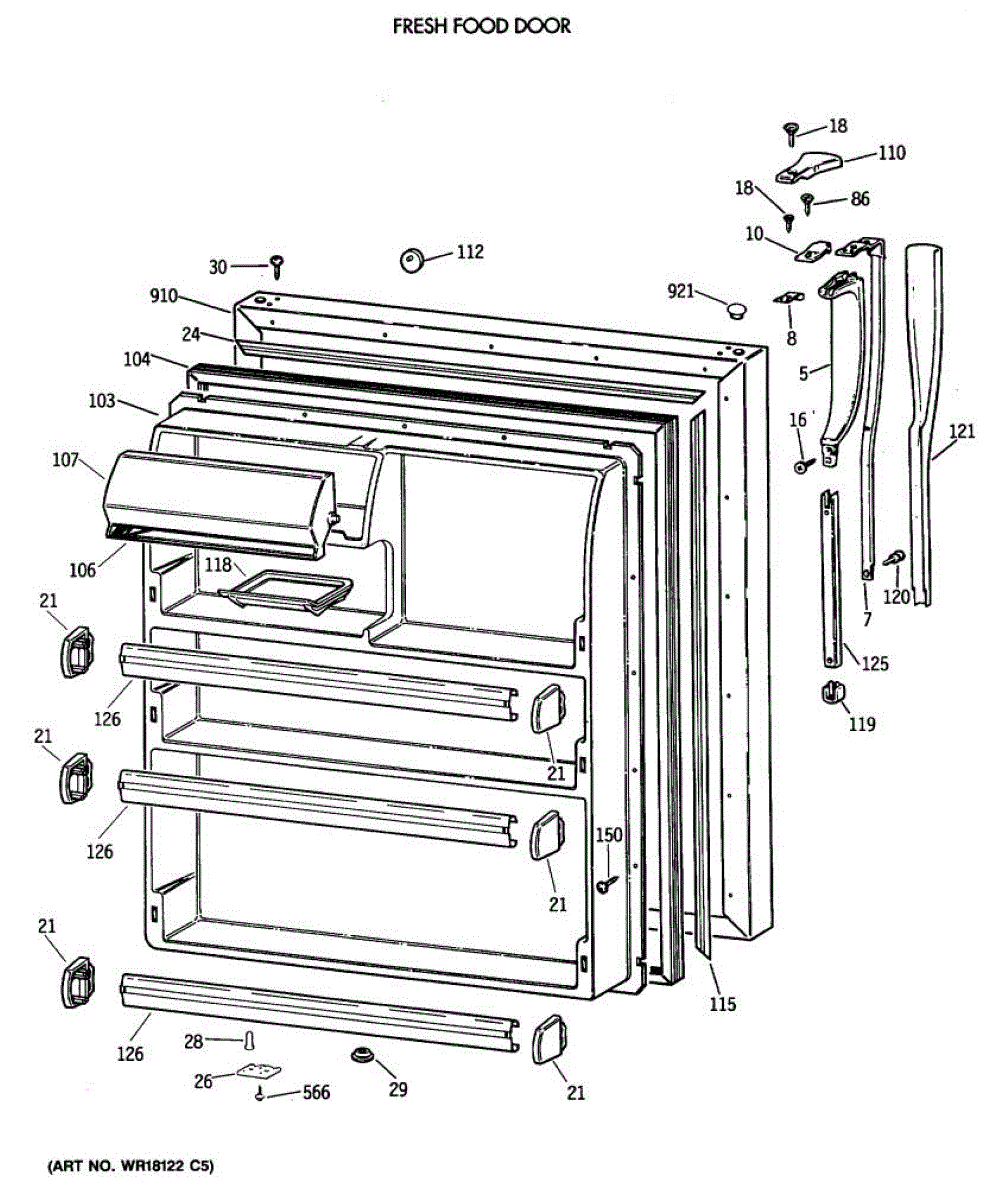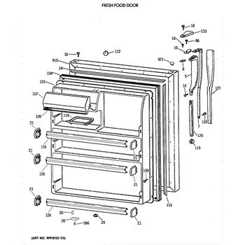 The Fresh Food Door Gasket is an OEM part for GE refrigerators. It seals the perimeter of the refrigerator's fresh food door, maintaining the internal temperature by preventing warm air from entering and cold air from escaping. The gasket measures approximately 39-3/4 inches by 29-3/4 inches.