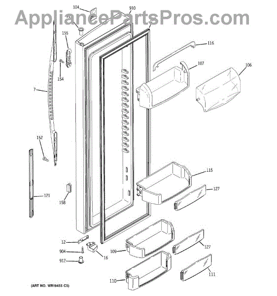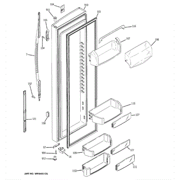 The Door Bin is an OEM part for GE refrigerators. It is a convenient storage compartment located on the interior of the refrigerator door, designed to hold and organize smaller items such as condiments, jars, or beverages.