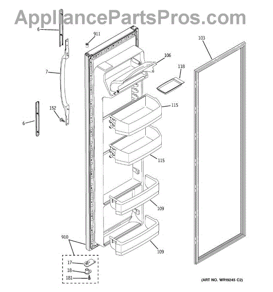 Parts for Ge RSG20IBPCFWW: 02 - Fresh Food Door Parts