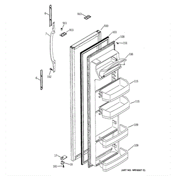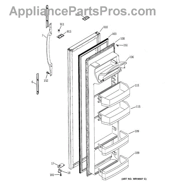 The Door Handle is an OEM part for GE refrigerators. This part provides a secure and comfortable grip for opening and closing the refrigerator door.