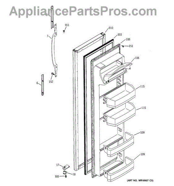 The Door Handle is an OEM part for GE refrigerators. This part provides a secure and comfortable grip for opening and closing the refrigerator door.