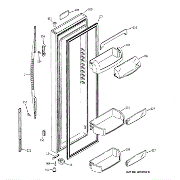 Parts for Ge RSK25LAPCCCC: 02 - Fresh Food Door Parts