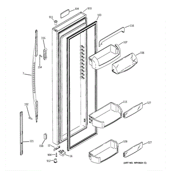 The Door Bin is an OEM part for GE refrigerators. It is a convenient storage compartment located on the interior of the refrigerator door, designed to hold and organize smaller items such as condiments, jars, or beverages.