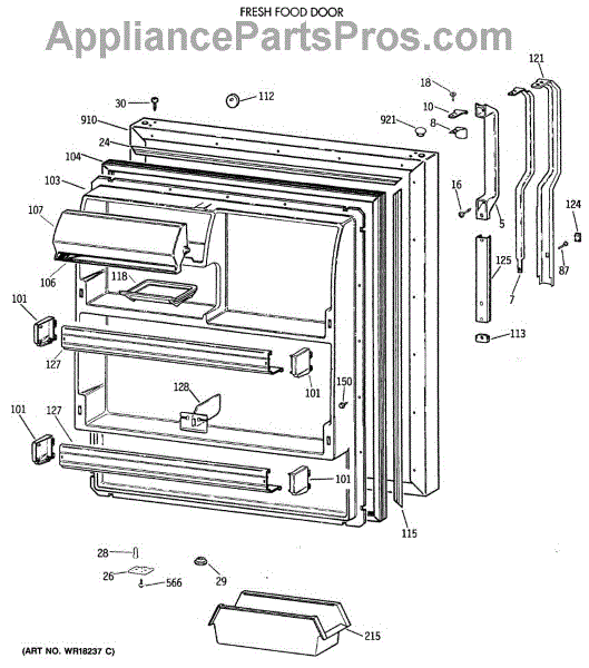 Parts for Ge TBX18JIXBRWW: 02 - Fresh Food Door Parts