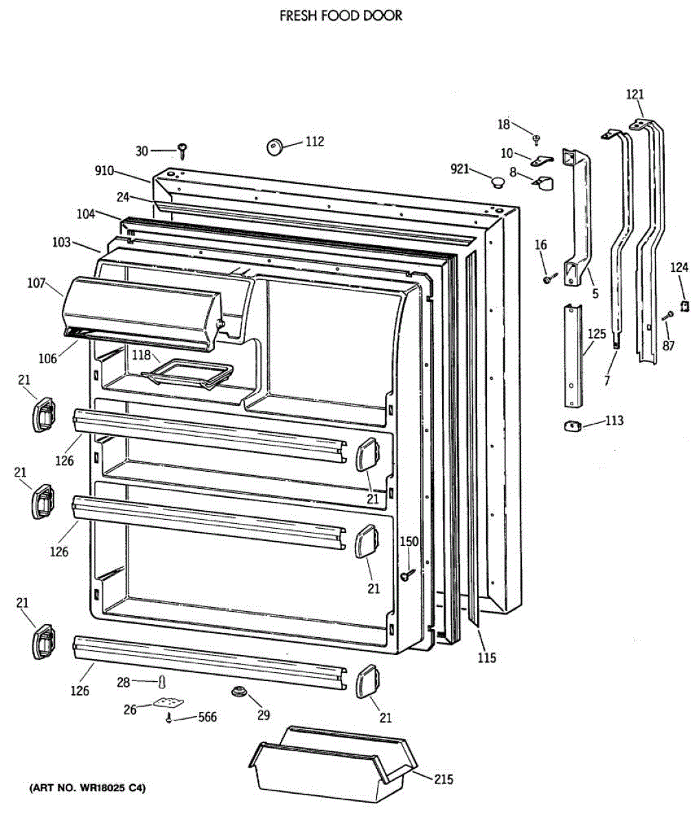 Parts for Ge TBX21DAXBRAA: 02 - Fresh Food Door Parts