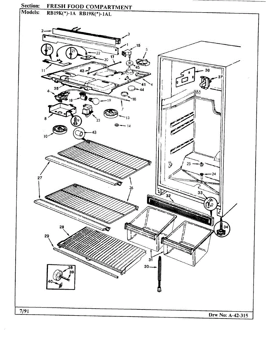 Parts for Magic Chef RB19KN-1AL / BG52A: 02 - Fresh Food Compartment Parts